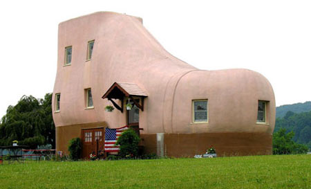 There are a few different versions of this type of house. I like to think that maybe they took the old nursery rhyme to heart when they came up with the concept to this house. Maybe, the first person to build a house like this just had an obsession with shoes.