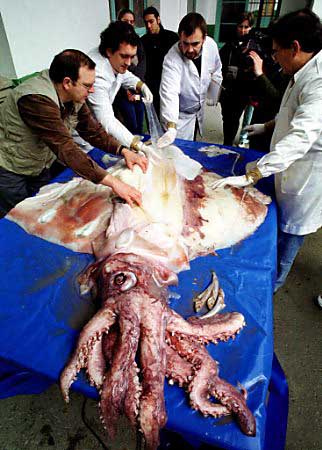 Incredibly, those scientists aren’t just fondling a huge pile of jelly there. That’s actually an animal, specifically the Dana Squid, named presumably after the stunning character played by Gillian Anderson whom matched the squid’s natural state of cynicism. Honestly, we don’t know, but that sounds like a better explanation than ‘the person that found it was called Dana’. Anyway, this thing manages to eat by blinding its prey by blinding with a massive flash of light (not by making them look at it, as we’d assumed). Sort of like the flashbangs that those unusually-talented gamers in Indonesia use to mercilessly slaughter you in every Call of Duty match you play against them. To stretch the metaphor, if we could call an AC-130 gunship on this, we goddamn wouldn’t hesitate for a second.